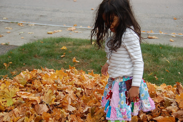 We have been raking for the past couple of weekends. I meant big piles of leaves since our yard looks like a huge pile of leaves. I personally do not like the feel of raking wet soggy leaves. My allergies are not very helpful either. Little Nicolette was having a blast, and it was very amusing to watch her gather leaves. We had raked them to be bagged, and Nicolette decided to move to a different spot to make a nest for her to play.